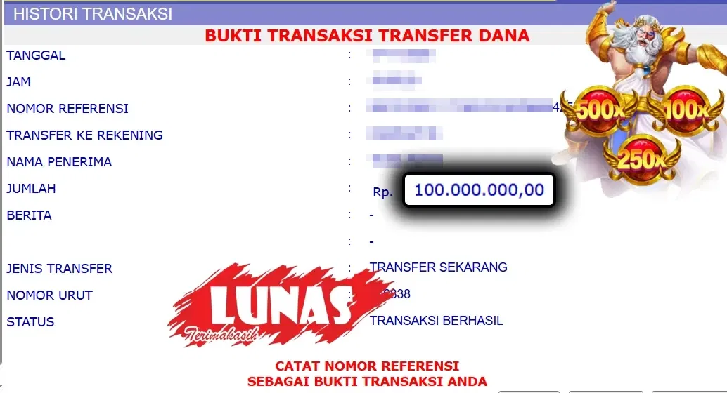 Bukti kemenangan nyata, transfer aman, saldo langsung terasa.