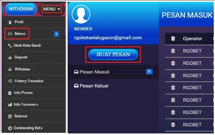 Memo adalah salah satu keunggulan fasilitas di RGOBET untuk mengirim sebuah berita berisikan informasi, pertanyaan, keluhan atau lainnya kepada operator aktif yang sedang bertugas.