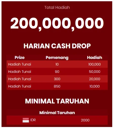 2. Minimal kekalahan dalam promo ini adalah 100.000