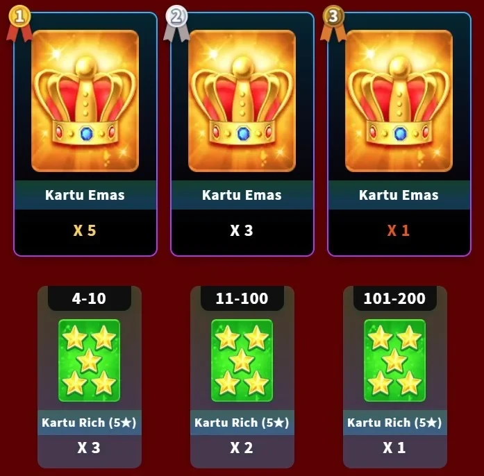 4. Setiap periode akan memiliki peringkat dan pemenang yang berbeda. Semua pemain akan mulai dari nol di awal pada setiap periode